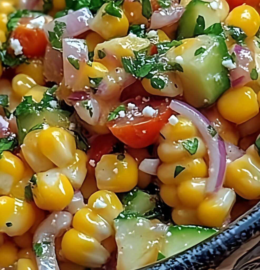 If you’re craving a refreshing and light side that’s packed with flavor, this Delicious Corn Salad has you covered. Whether you’re grilling out, serving at a family gathering, or just looking for a healthy lunch option, this salad is as tasty as it is simple to prepare. The sweetness of the corn combined with the crunch of cucumbers, the tang from lime, and a sprinkle of feta (if you like) makes this salad a real crowd-pleaser.