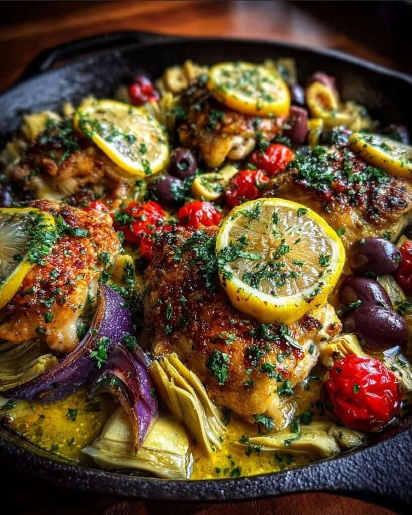 🍋 Mediterranean Lemon Chicken with Artichokes & Olives – Bright, One-Pan Mediterranean Magic ✨