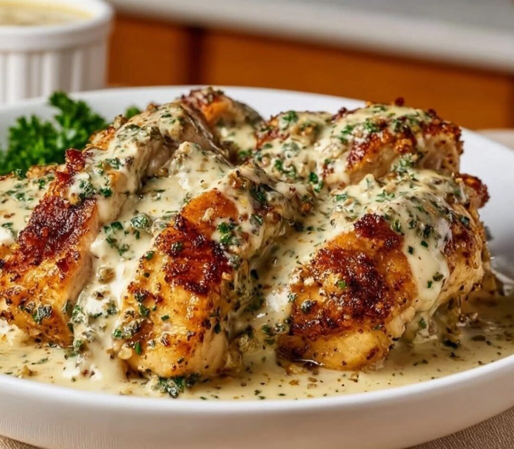 🍗 Baked Caesar Chicken with Creamy Parmesan Sauce – Juicy, Garlicky, Cheesy Comfort ✨