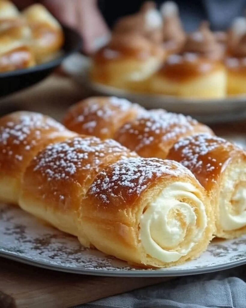 Light, flaky puff pastry filled with a luscious vanilla cream—these rolls are a delightful treat for any occasion!