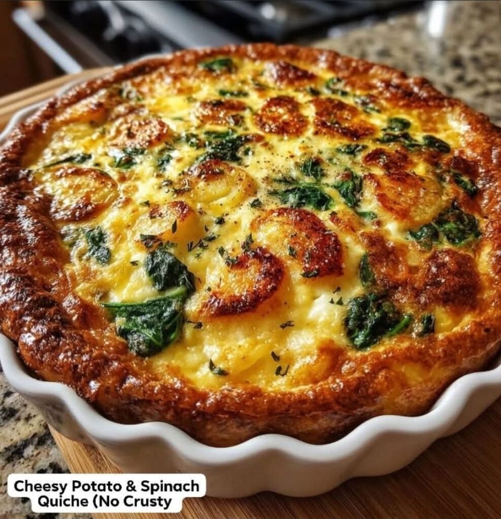 🥔🧀 Crustless Cheesy Potato & Spinach Quiche – Cozy, Crust-Free Comfort ✨