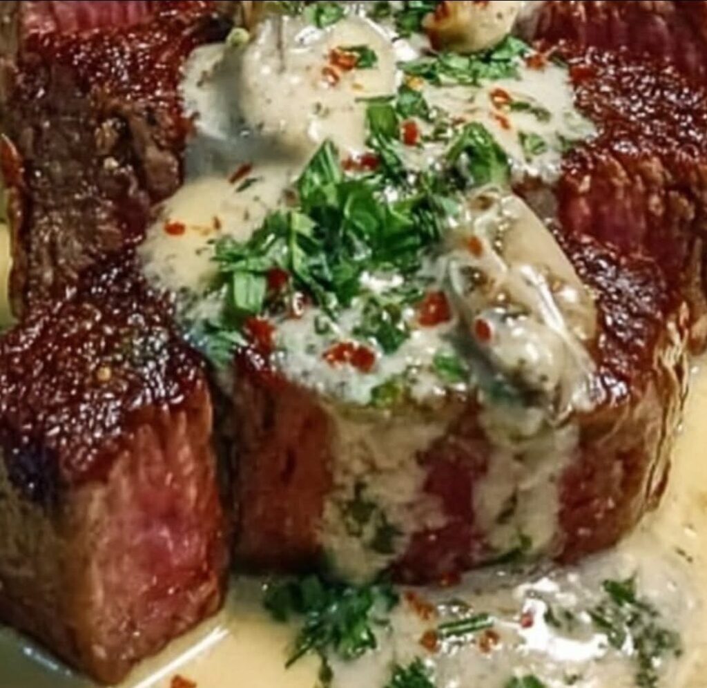 This juicy steak with creamy garlic sauce is pure comfort and luxury in one bite—tender, buttery, garlicky heaven. Fire up that skillet and treat yourself tonight! Who’s ready to dig in? 🥩🔥