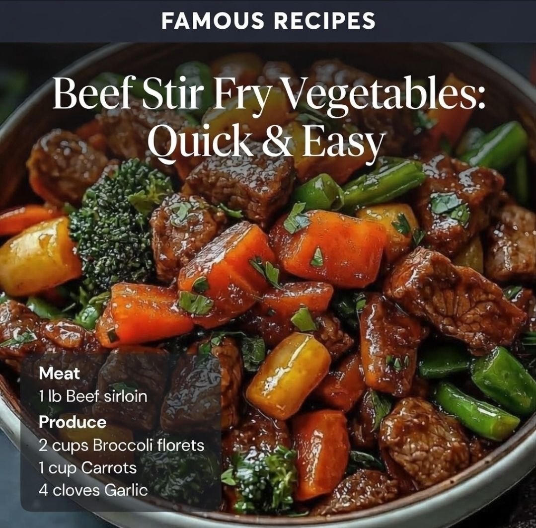 This beef stir-fry with vegetables is quick, colorful, and packed with flavor—crisp veggies, tender beef, and a glossy sauce you’ll want to eat by the spoonful. Make it tonight and enjoy! 🥦🥕🥩