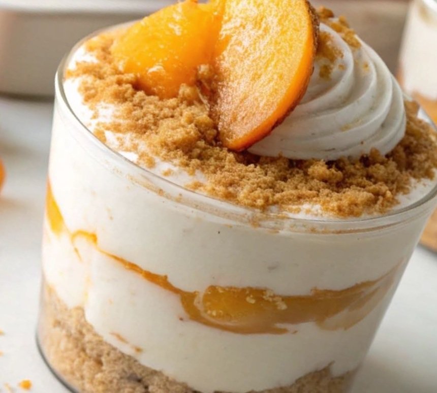 NoBakeDessert #PeachCobblerCups #SummerTreats #EasyDesserts #PeachyKeen