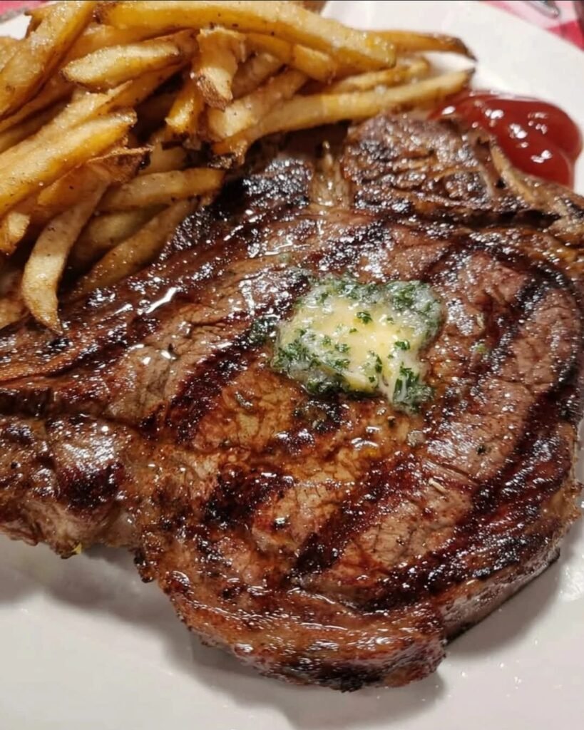 Steak frites is the ultimate bistro comfort: tender, flavorful steak grilled or pan-seared to perfection, topped with a pat of luxurious garlic herb butter that slowly melts over the hot meat, and served with a generous pile of crispy golden fries. This version elevates the classic with a simple homemade compound butter bursting with fresh garlic, parsley, and thyme—pure magic when it hits the hot steak. Quick enough for weeknights, impressive enough for special dinners.