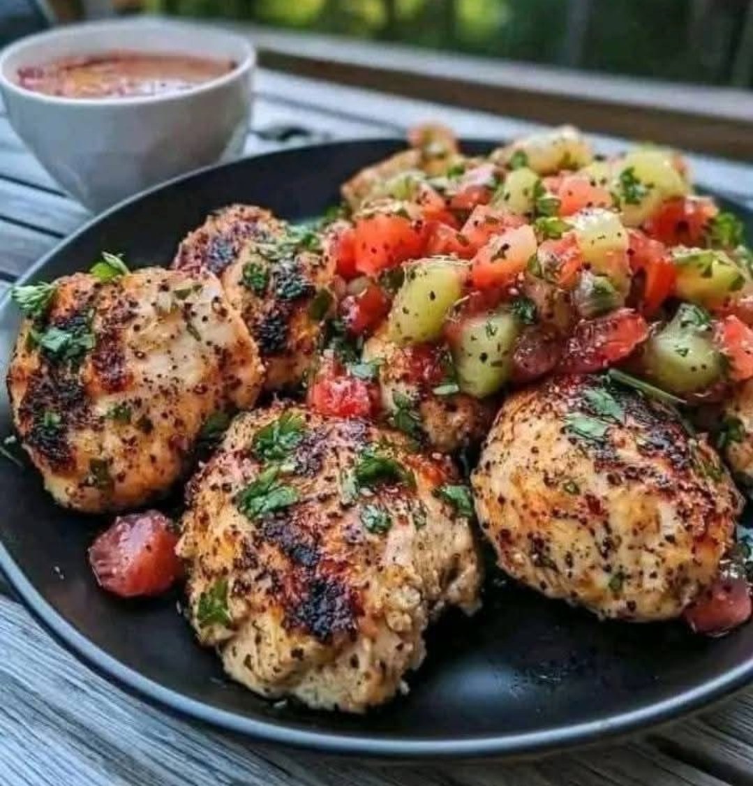This dish is a perfect balance of savory and sweet, with the bold garlic-cilantro marinade complementing the bright, tropical salsa. It’s healthy, gluten-free, and easily customizable—adjust the jalapeño for heat or swap in your favorite fruits for a unique twist.