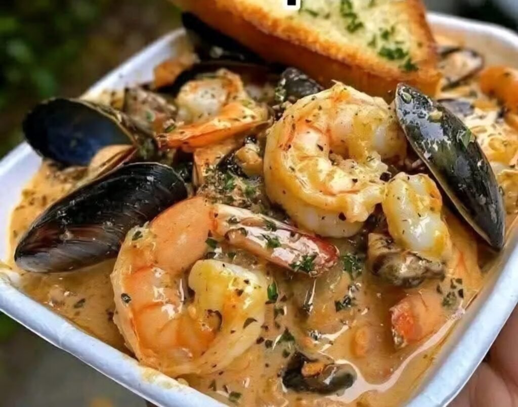 Shrimp and Mussels in Creamy Garlic Sauce: A Seafood Lover’s Dream 🍤🦪