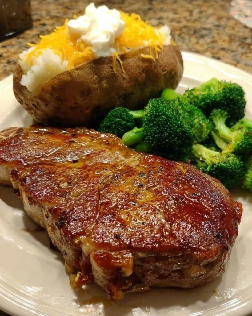 Nothing beats the satisfaction of a classic steak dinner: a perfectly seared ribeye or strip steak with a golden, crispy crust, a fluffy baked potato piled high with melty cheese, creamy sour cream, and fresh toppings, plus crisp-tender broccoli for balance. This combo delivers big, bold flavors and hearty comfort—ideal for date nights, celebrations, or simply treating yourself (and a partner) to something special without leaving the house.